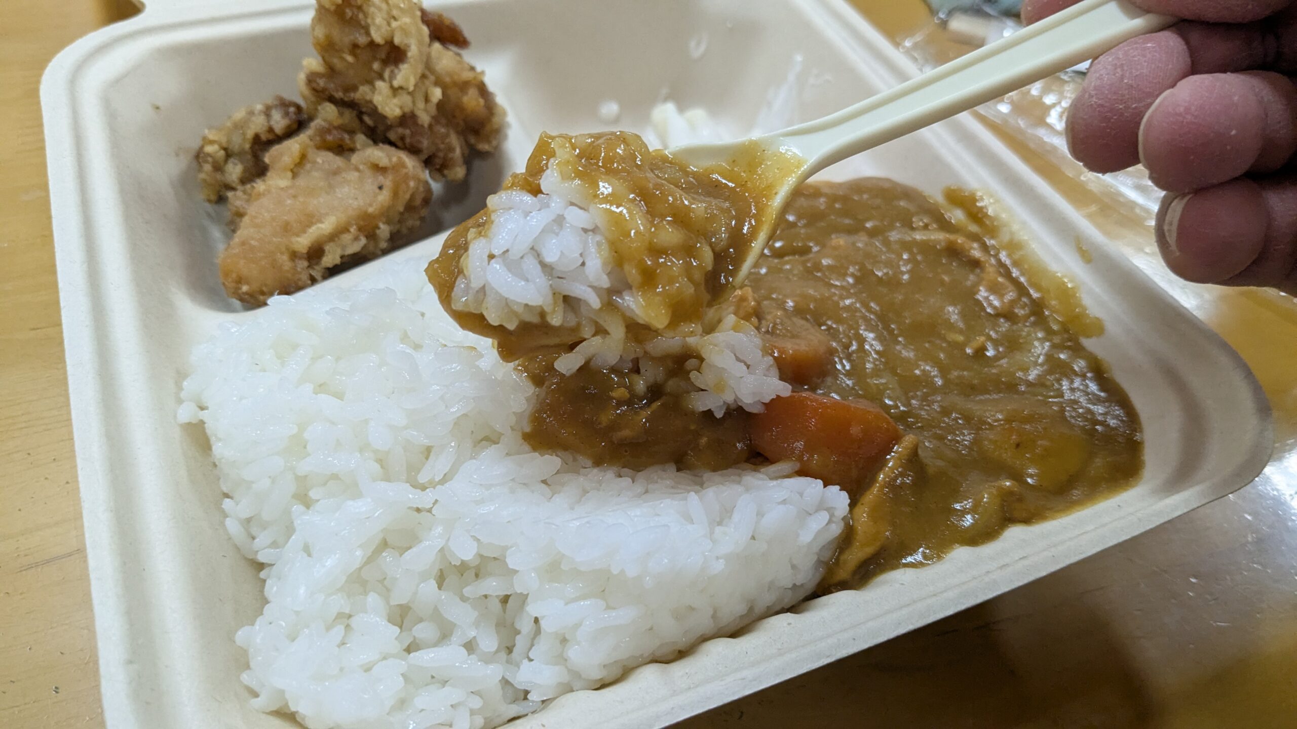 近所のスーパーにパックのご飯を買いに走っていただきました<(_ _)>