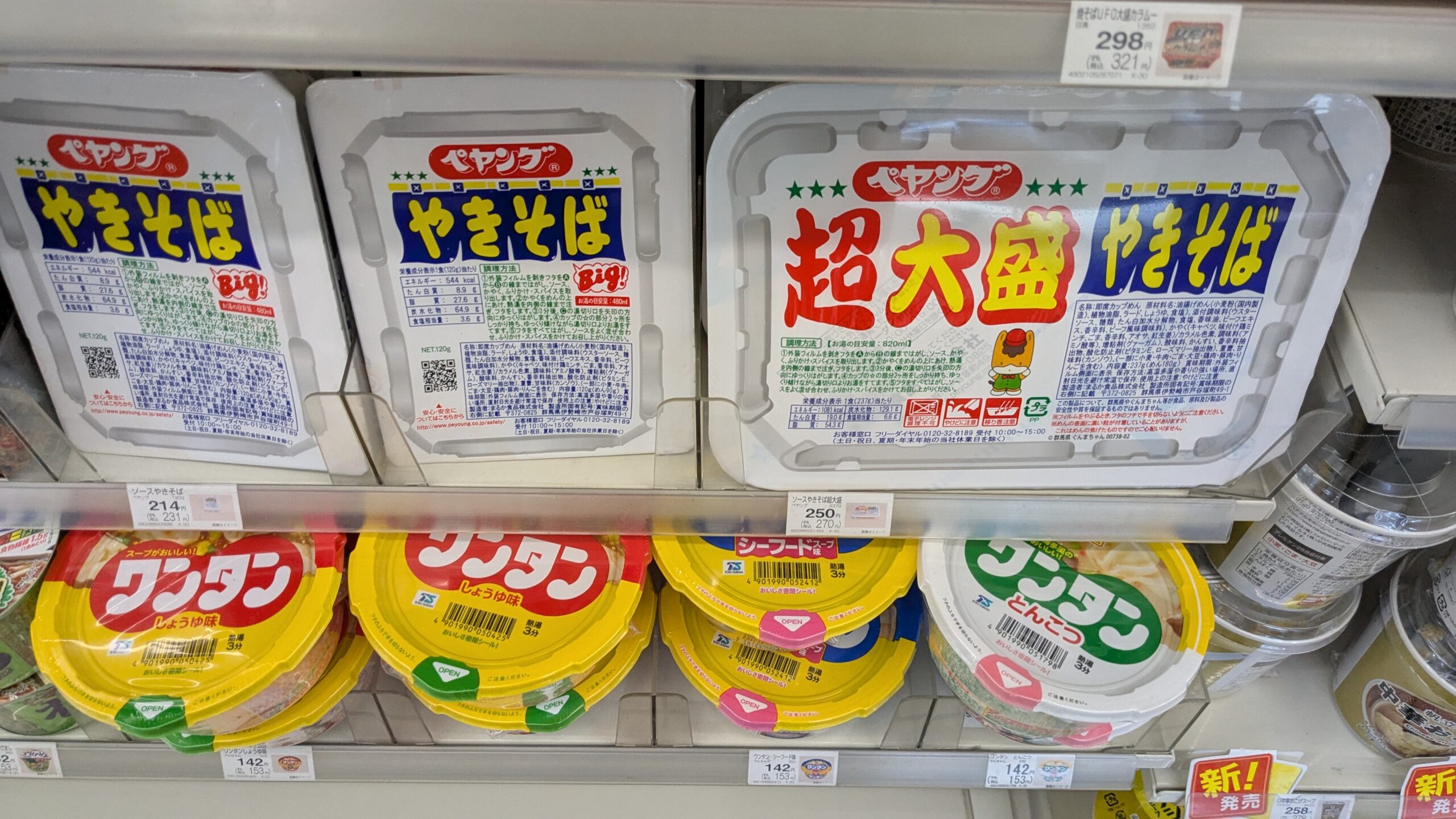 すぐ隣にある「ペヤング ソースやきそば超大盛」の値段を見てびっくり😮