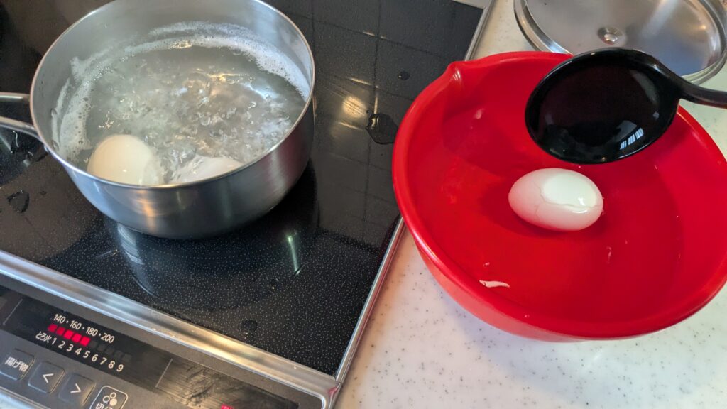 10分~12分のゆでたまご練習しました