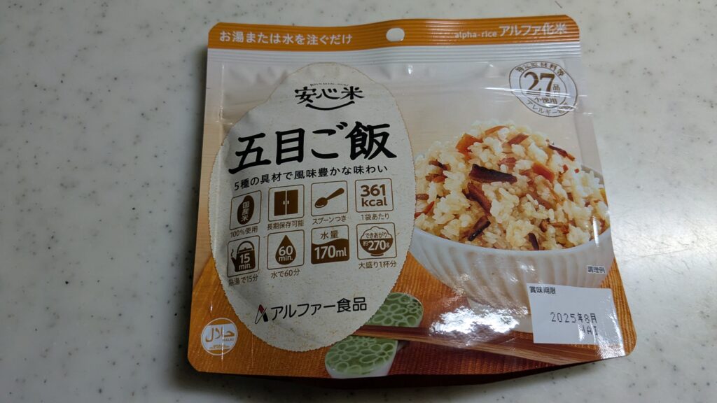 災害備蓄用のアルファ化米 安心米 五目ご飯 食べてみた