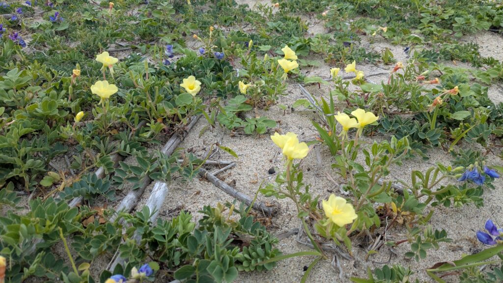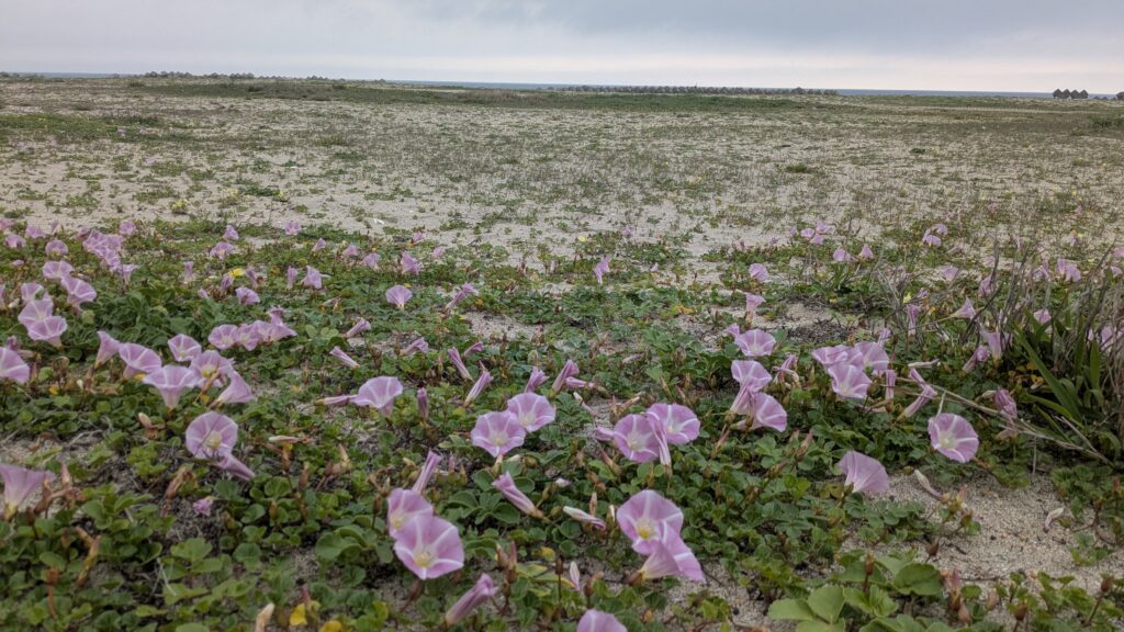 1. ヒルガオは土のところより砂のところのほうで見ることが多いような気がします。