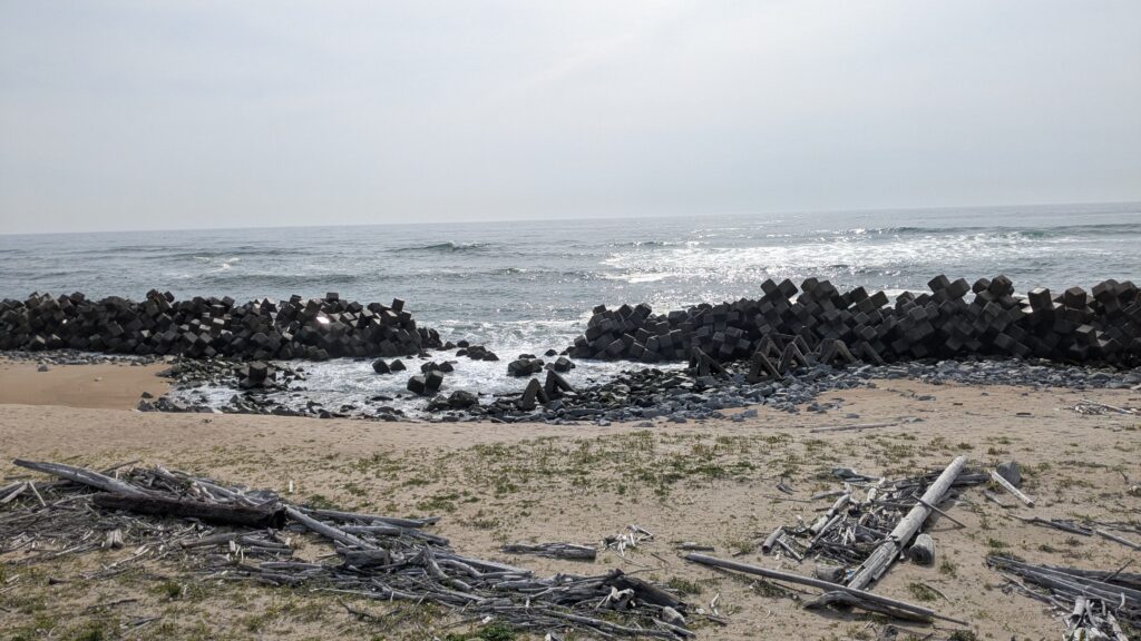 この季節は南風によって波で砂が侵食されて元々埋まっていたテトラが出てきただけですね。