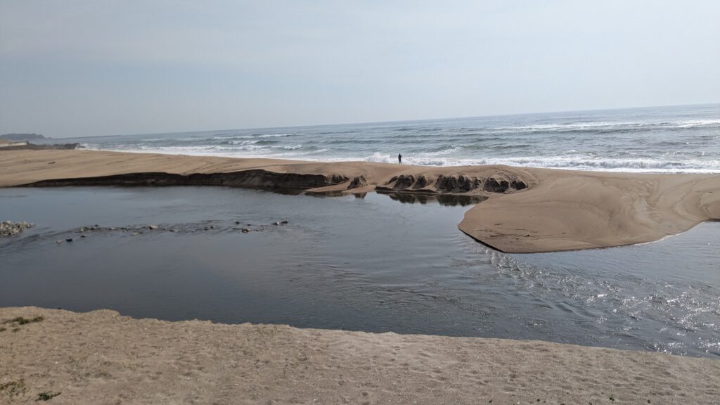 雨の量でも河からの流出で河口付近はとくに砂の動きが激しいです。