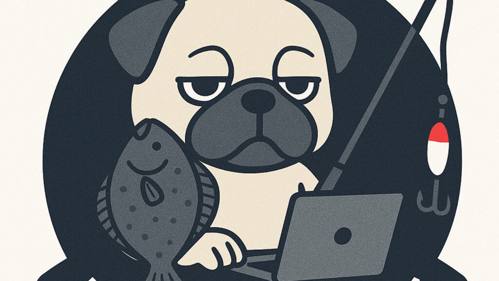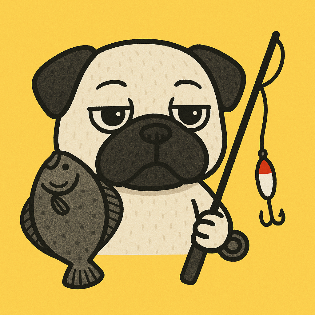 パグに釣竿とルアー、そしてヒラメを添えるという発想が生まれました。