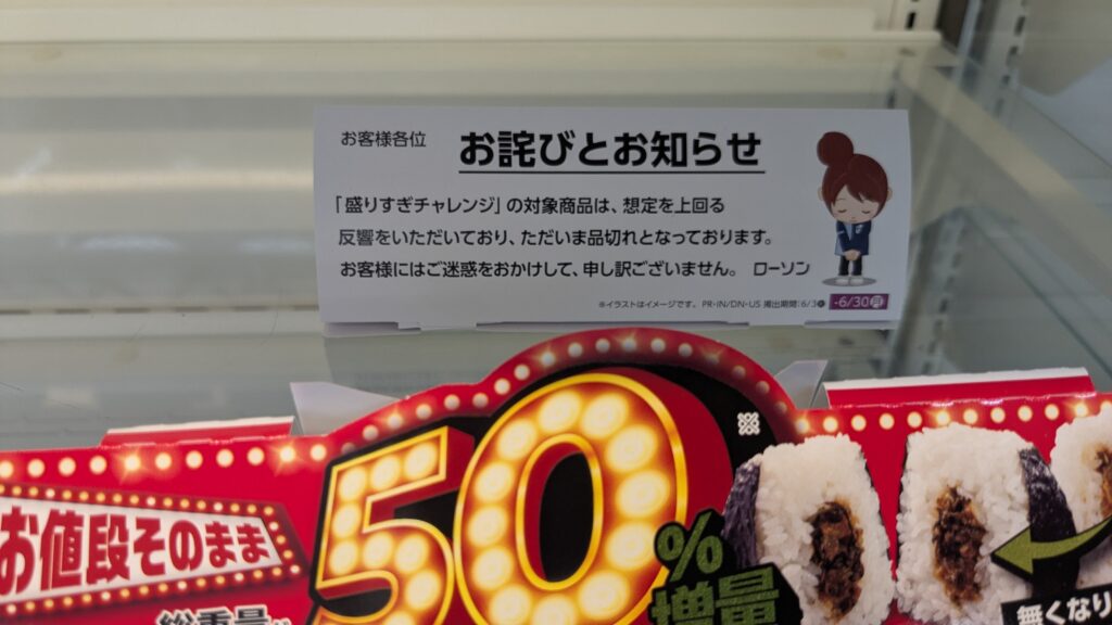 さて、今日の昼飯は決めていました。そう、ローソンの\50周年の感謝を込めて/盛りすぎチャレンジ