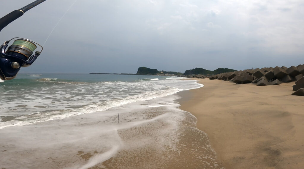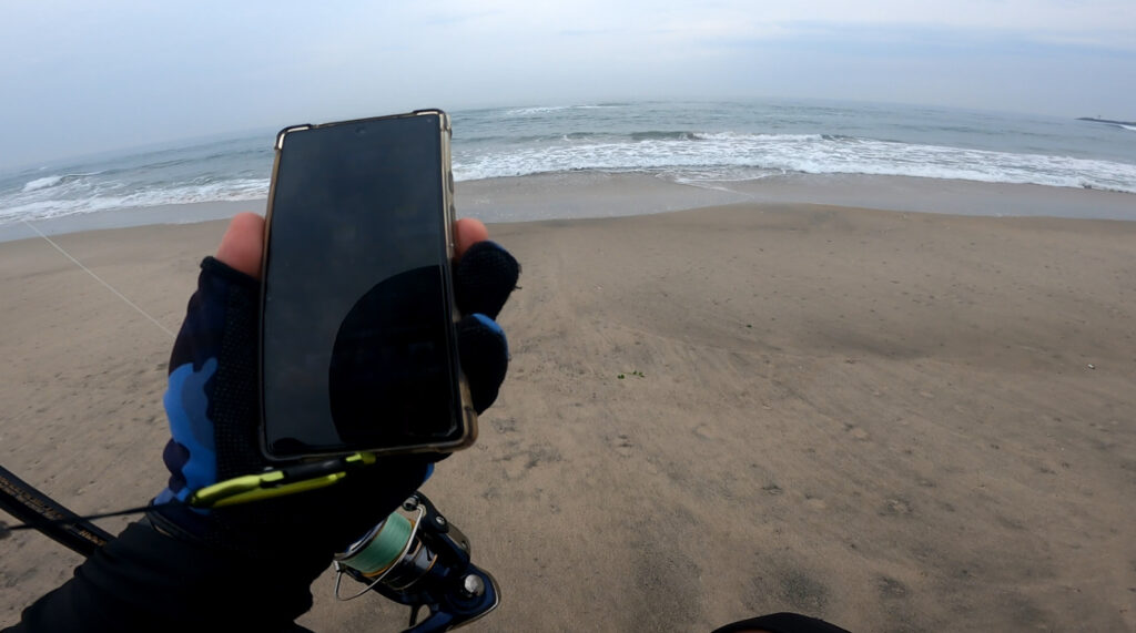 後半戦:風が出てきたのでメタルジグ投入。「飛距離は裏切らない」が、魚の反応なし💦