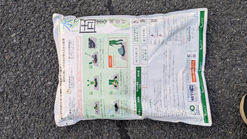 今回で3回目となる「水で固まるアスファルト補修材 マイルドパッチ」で