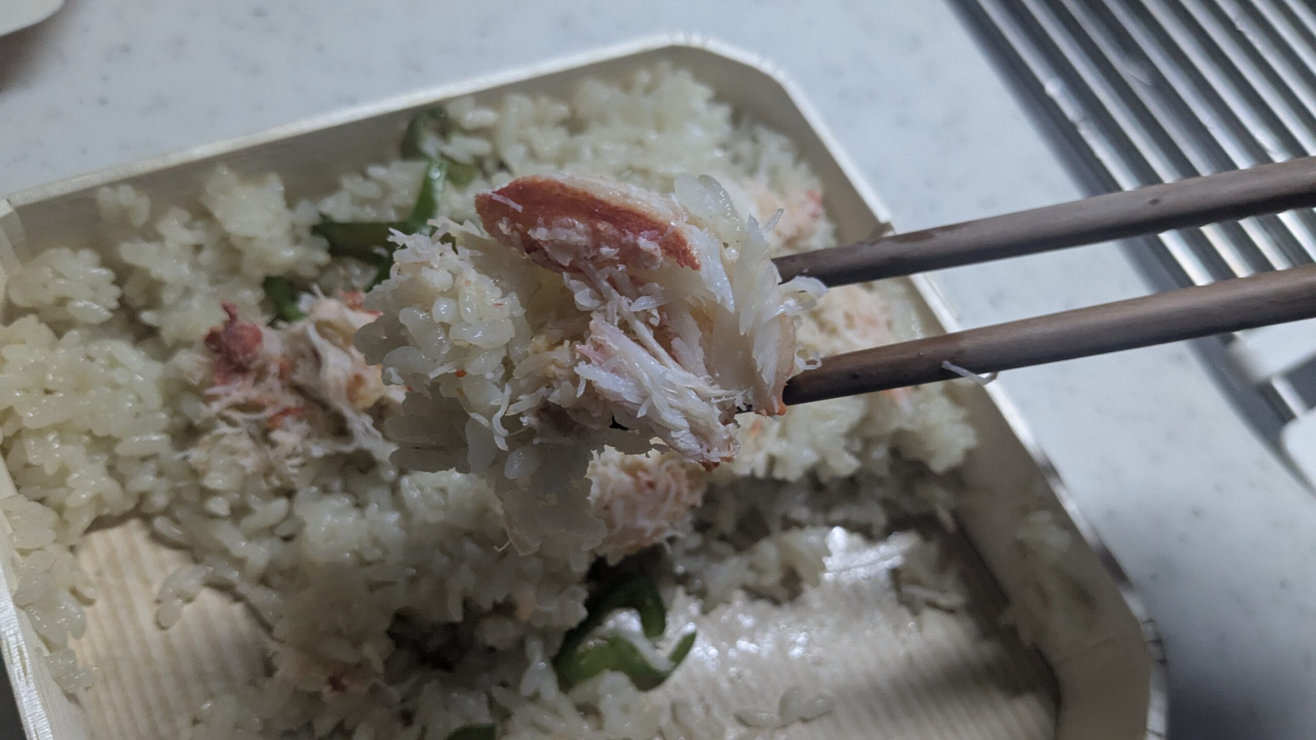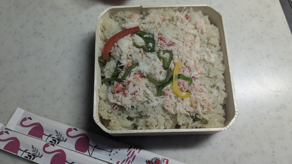 そんな私のもとに、いだたきもののカニピラフがやってきました。