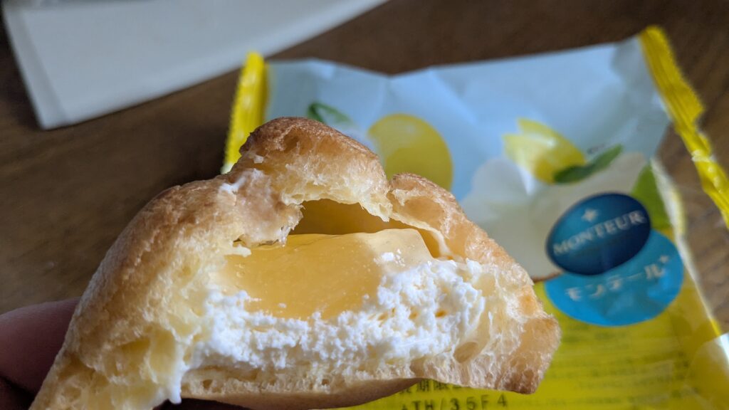 ふわふわのシュー生地に、甘さ控えめでほんのり酸味が効いたレモンレアチーズクリームがたっぷり詰まっていて、これがもう最高に美味しい!今日一日瀬戸内レモンでご苦労様~