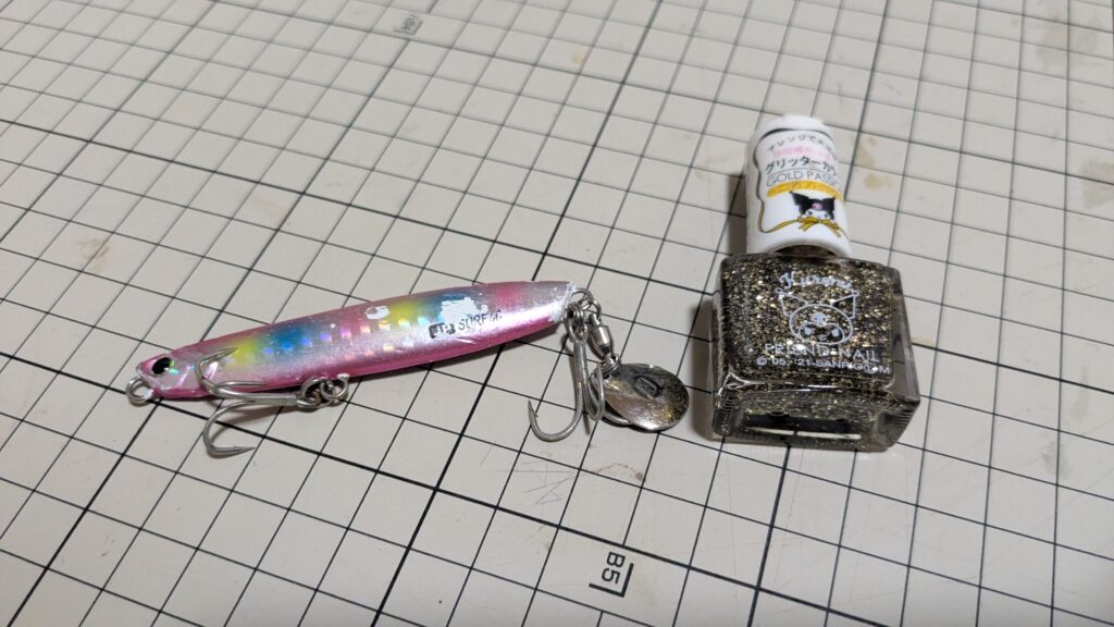 さらに、ジグパラサーフにダイソーのマニキュアでキラキラチューン✨