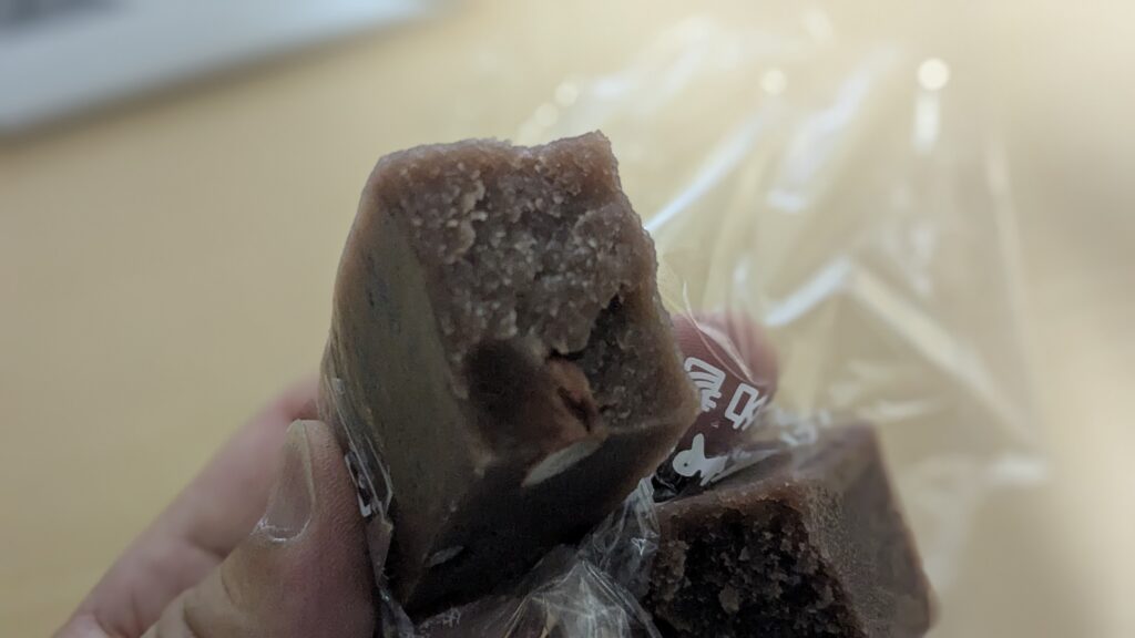 - なめらかな羊羹というよりは“もっちり感”があって餅っぽい