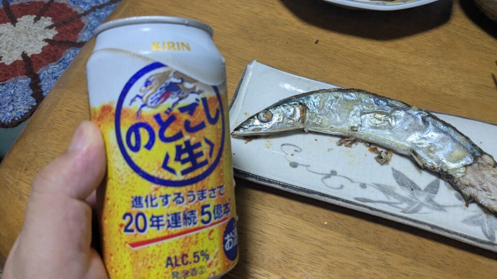 さらに母が用意してくれていたのは、令和7年の初物サンマの塩焼き。香ばしい香りと脂ののった旨みが最高で、カレイの唐揚げと夢の共演!