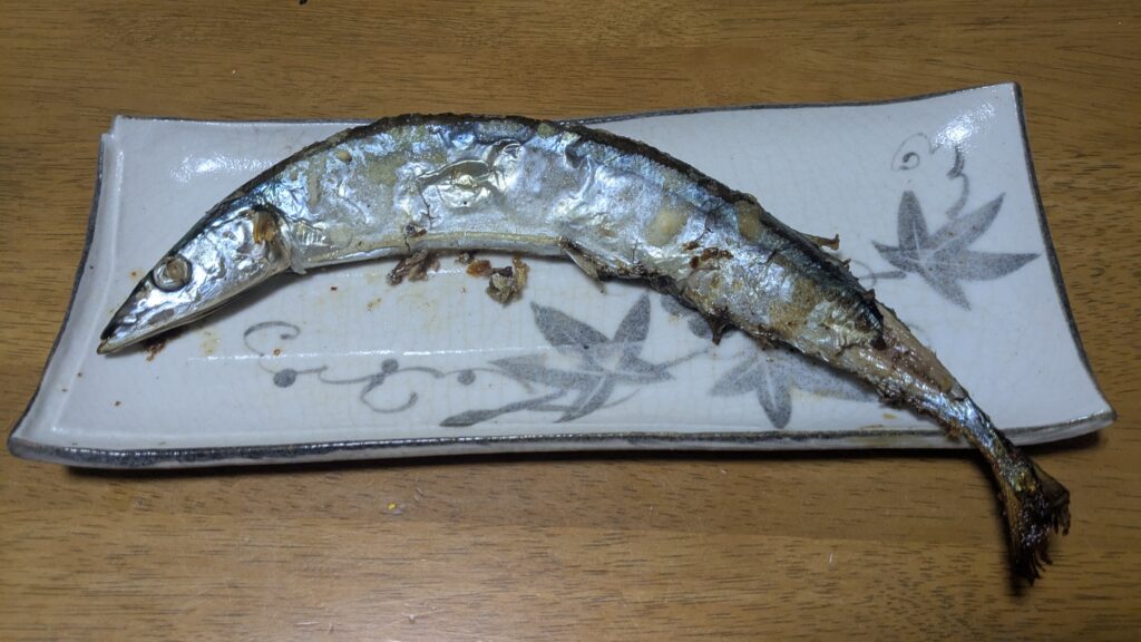 さらに母が用意してくれていたのは、令和7年の初物サンマの塩焼き。香ばしい香りと脂ののった旨みが最高で、カレイの唐揚げと夢の共演!