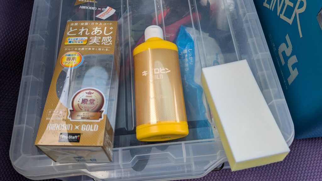 しぶしぶ重い腰を上げ、愛用していたリンレイの油膜とりガラスクリーナーをトランクから取りだしたらほんの少しだけ残ってた足りない💦――まさかのストック切れ!😵💫