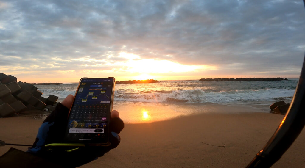 「これは…荒れ気味で逆にチャンスあるかも?」と、前回も入った沖にテトラ帯のあるポイントを選択。