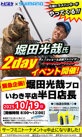 しかも、明日はあの元祖ヒラメハンター・堀田光哉氏がいわき市に来る日!