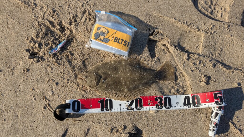 慎重に寄せてくると、35cmのヒラメ(ソゲ)が姿を現した。