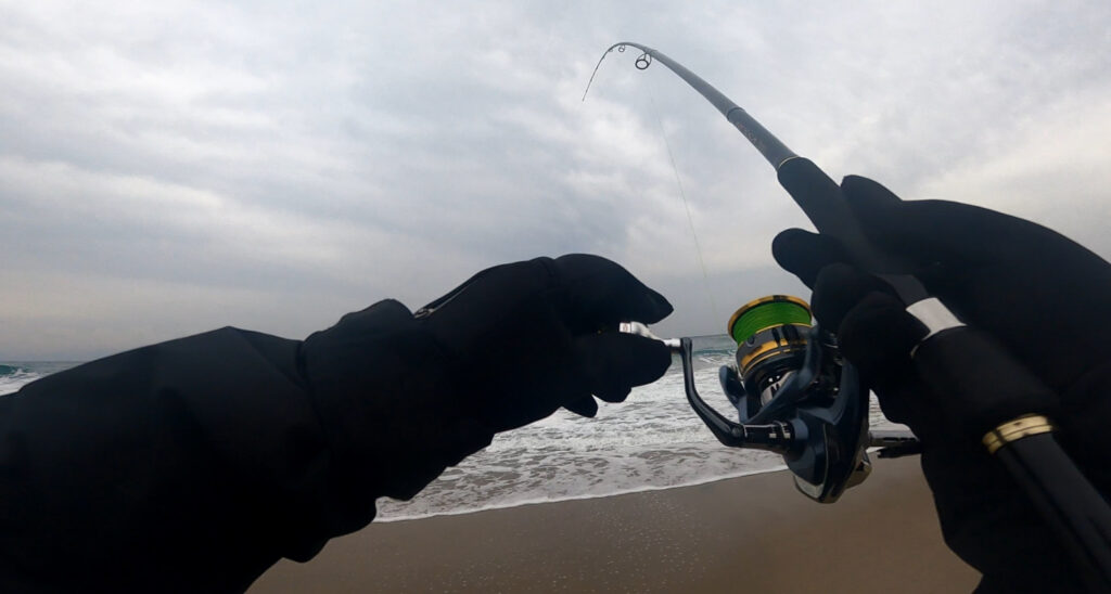ロッドをグイッと曲げるアタリ!