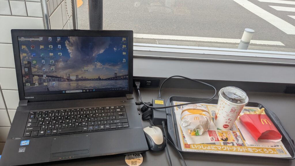電源があって、落ち着いて作業できる場所……ファミレスか?
