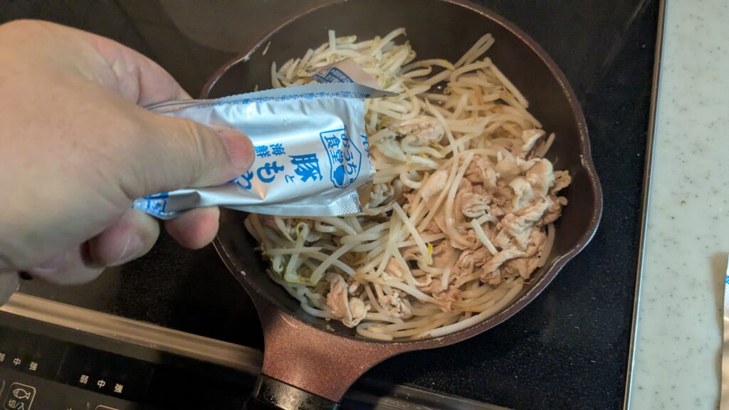 「豚ともやし 海鮮うま塩炒めの素」は、