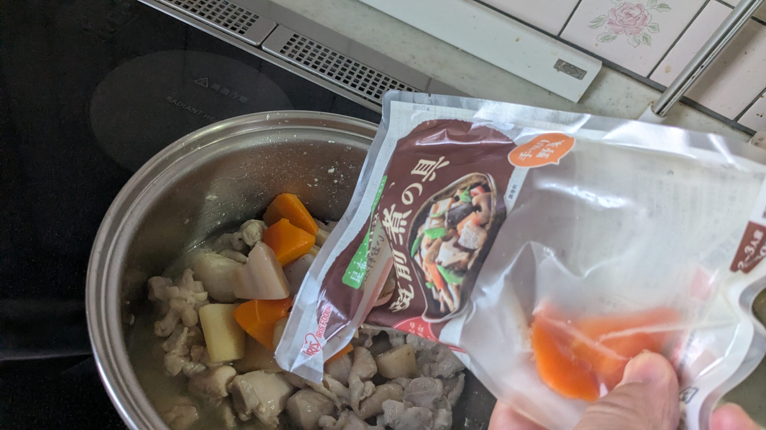 ② 筑前煮の具を3袋、汁ごとIN