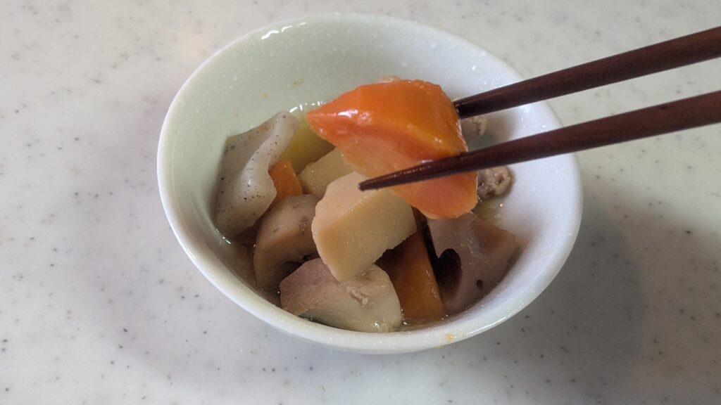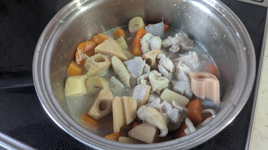 本日の食材は――出汁仕込みの 筑前煮の具