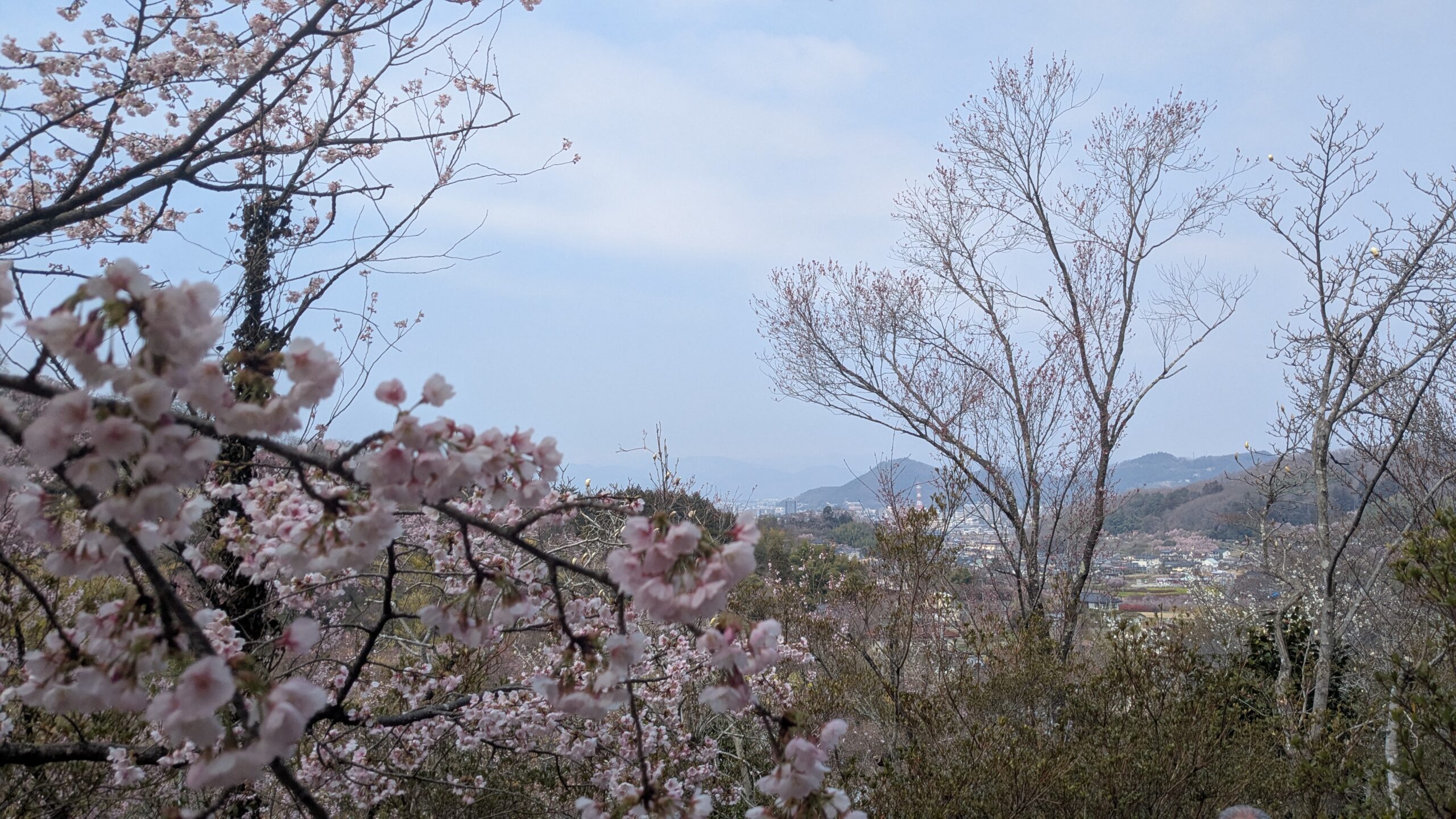 ふと外を見ると、クリニックの駐車場から桜が見える。